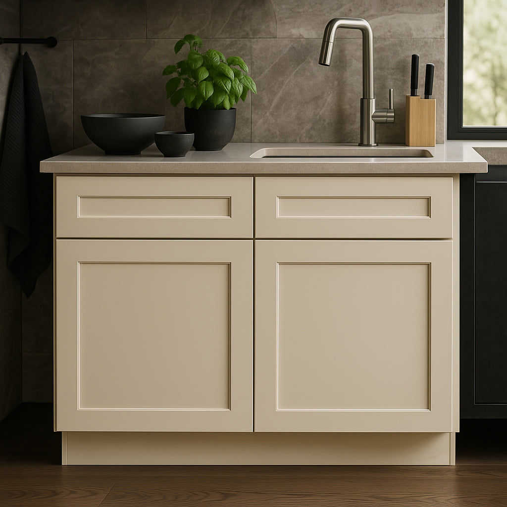 The Newport Base Cabinet in Blended Cream combines durable all-plywood construction with elegant Shaker-style design. Featuring soft-close technology and adjustable shelves, it offers both functionality and timeless style for your kitchen.