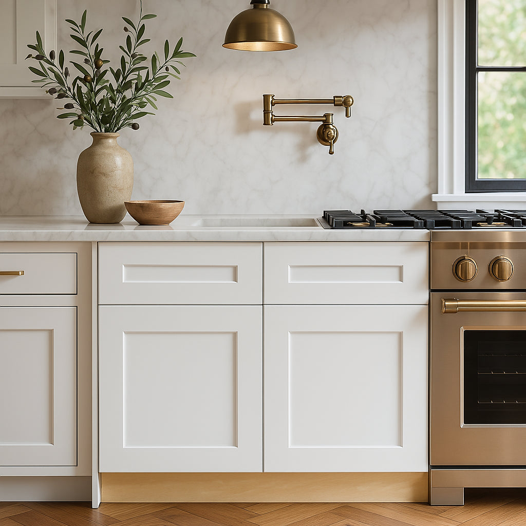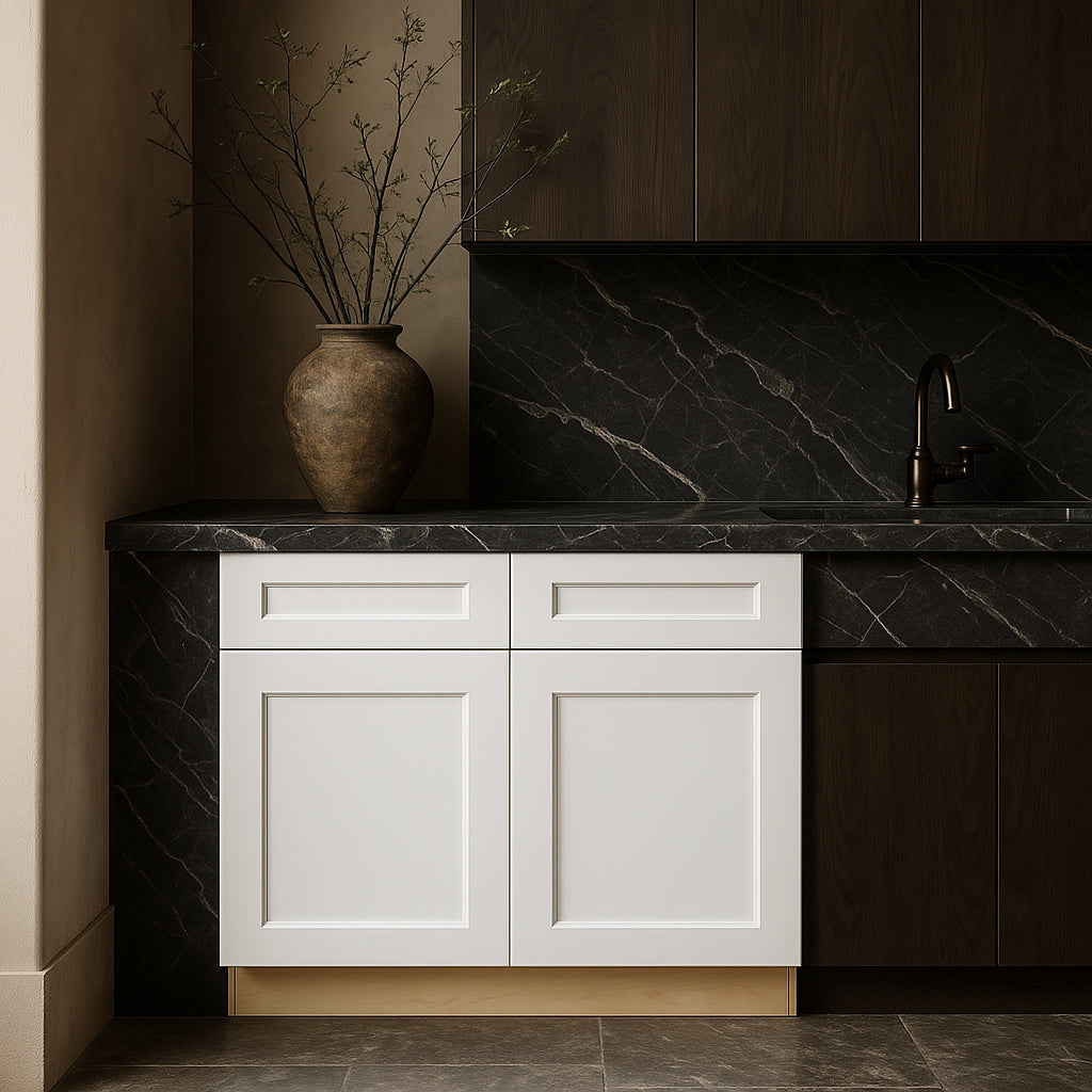 Awaken your senses by immersing your kitchen in the ethereal glow of our Newport Base Kitchen Cabinet. The immaculate Pacific White finish offers a canvas of clarity, perfectly echoing the tranquil whispers of light it dances with. Its sleek shaker design allows you to curate an environment that is both refreshing and timeless. Pair with delicate gold handles to create a polished aesthetic, ensuring every meal begins and ends in elegance. This cabinet is more than a storage solution—it's a statement of refined living.
