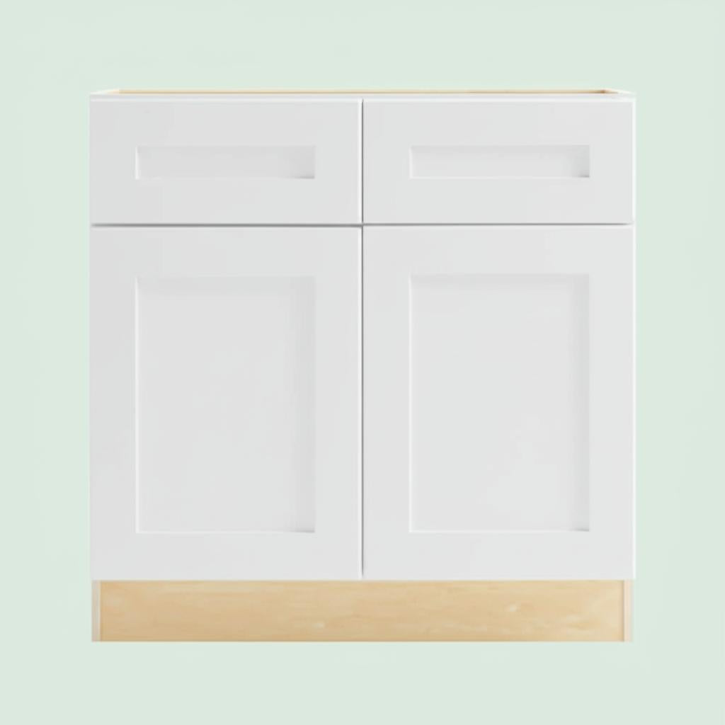 The Newport Base Kitchen Cabinet by Home Decorators Collection combines modern design with practicality. Featuring a Pacific White finish, durable plywood construction, and soft-close mechanisms, it offers both style and functionality for your kitchen.