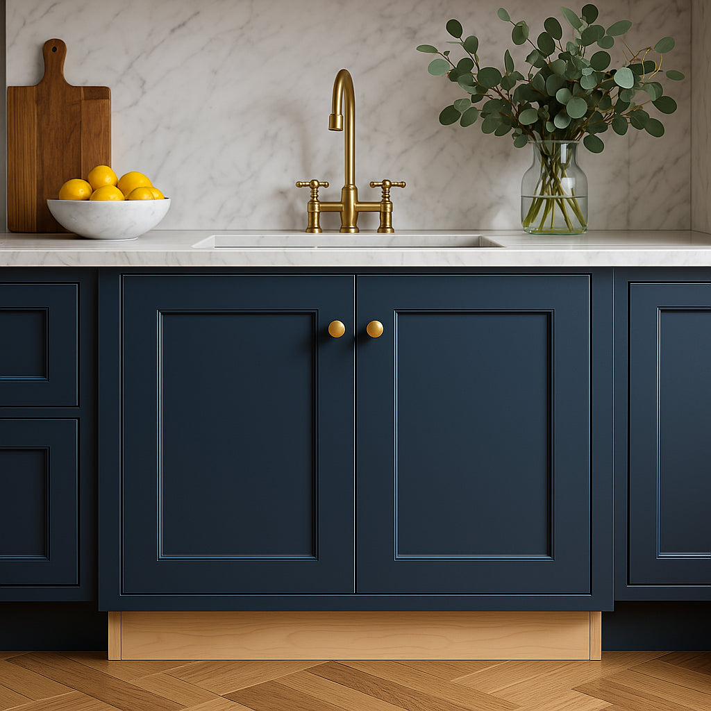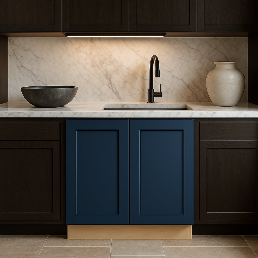 • Sophisticated Design: Features Shaker-style doors with a bold mythic blue finish for a modern touch.