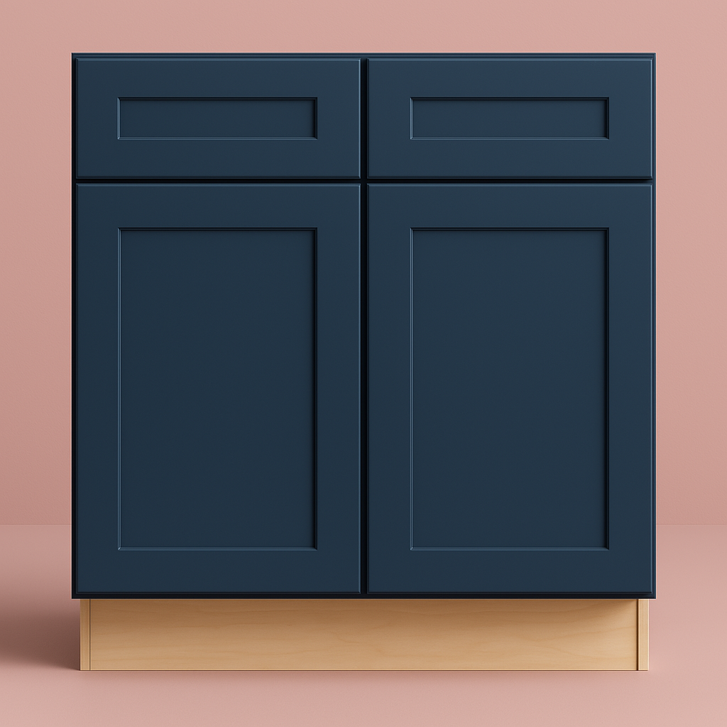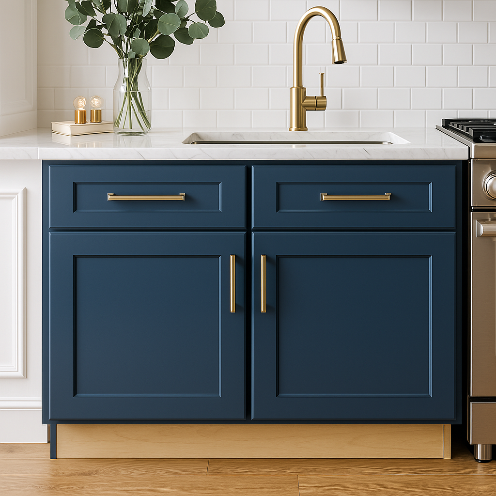 The Newport Base Kitchen Cabinet in Mythic Blue combines bold design with premium functionality. Featuring durable all-plywood construction, Shaker-style doors, and soft-close mechanisms, this cabinet offers style, strength, and convenience.