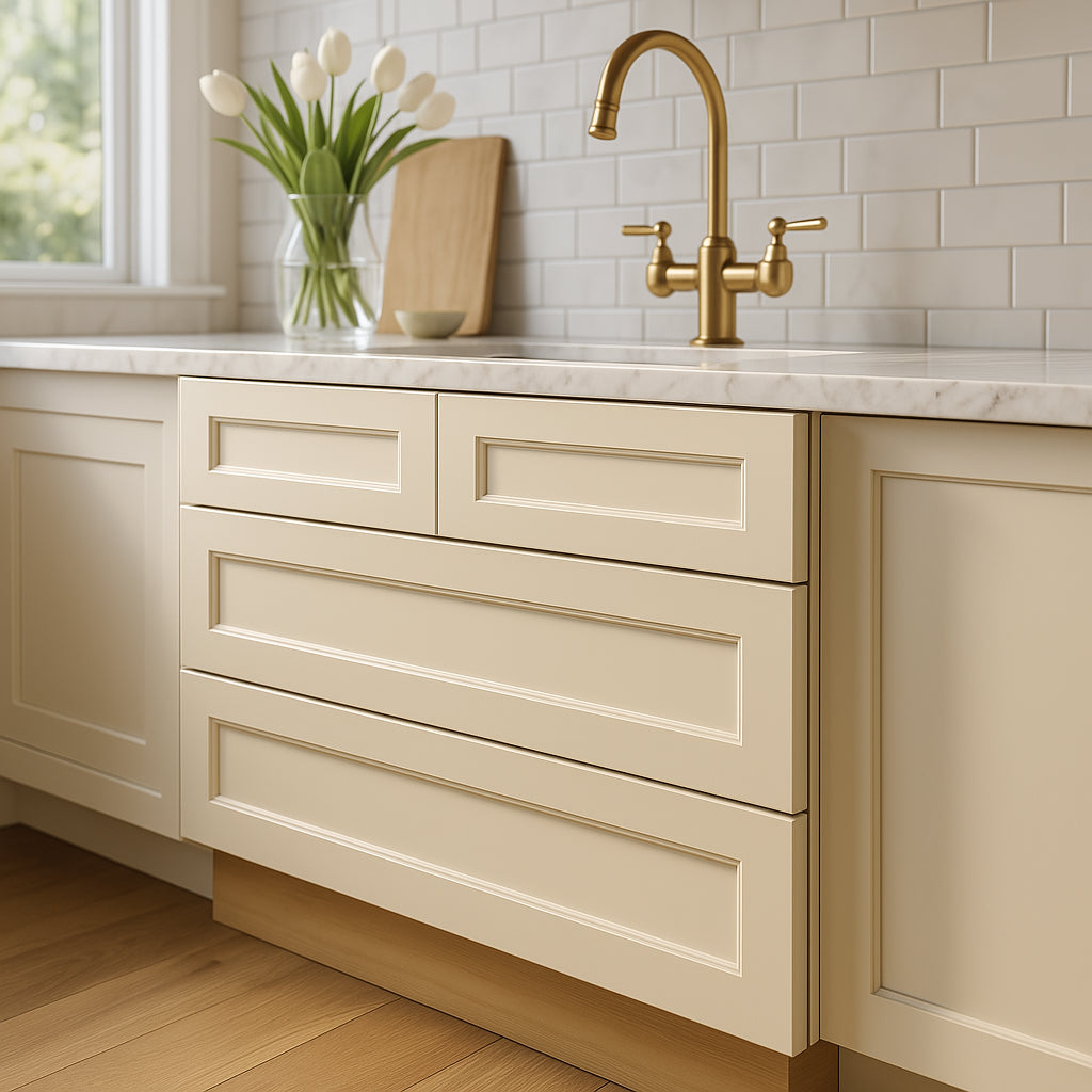 • Elegant Design: Features a Shaker-style design with a Blended Cream finish for a timeless aesthetic.