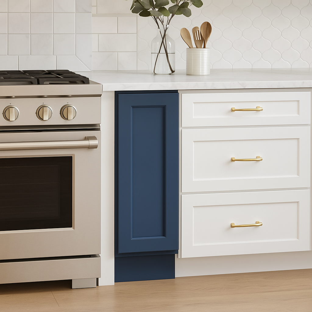 The Newport Mythic Blue Kitchen Cabinet is a statement piece that transforms any kitchen into a haven of sophistication. Its deep blue finish exudes timeless elegance, while the shaker-style design adds a touch of modern geometry. Pair it with brass fixtures for a luxurious contrast or natural wood tones for a warm, inviting ambiance. This cabinet is not just functional storage but a centerpiece of refined living.
