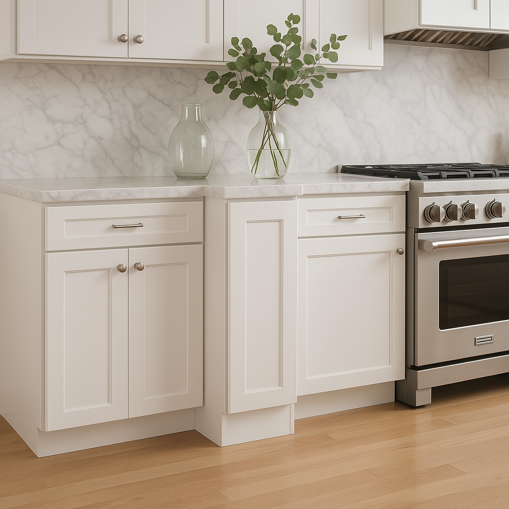 - Design: Features a wide shaker style with a clean white finish, providing a modern, airy touch to your kitchen.