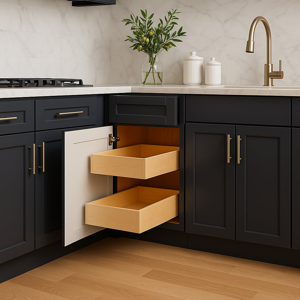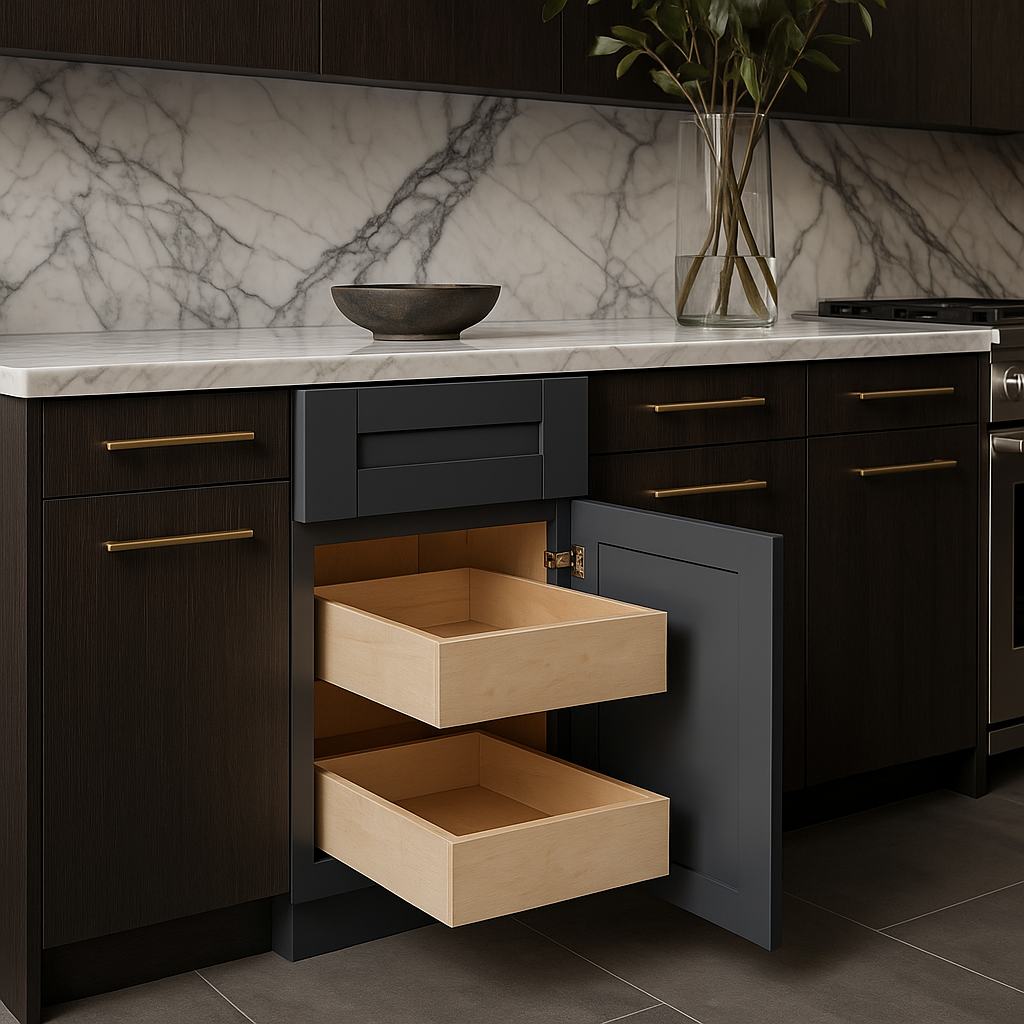 Transform your kitchen today with the Washington Onyx Base Cabinet, where style meets functionality.