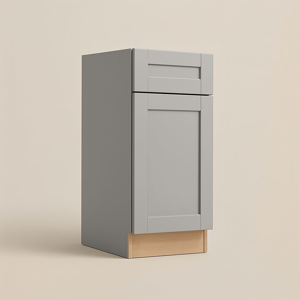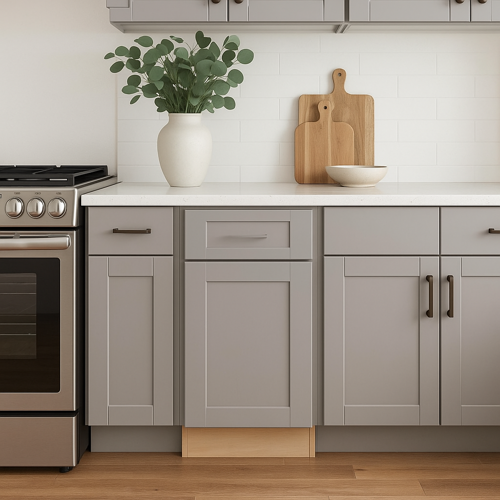 The Washington Veiled Gray Shaker Base Cabinet combines timeless shaker design with modern functionality. Featuring a durable plywood frame, soft-close drawer system, and a stylish veiled gray thermofoil finish, this cabinet is perfect for enhancing your kitchen's aesthetic and utility.