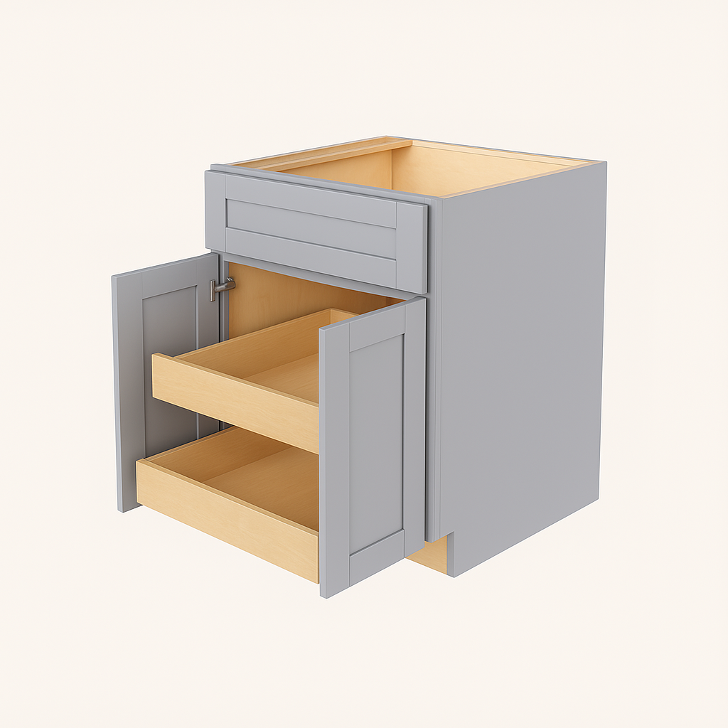 The Washington Veiled Gray Plywood Shaker Cabinet redefines kitchen luxury through its understated elegance and practical design. The gracefully muted gray finish provides a serene backdrop, smoothing over the daily hustle of a modern kitchen. Featuring artful shaker-style doors, this cabinet exudes a classic yet contemporary appeal. Envision it styled with sleek metallic hardware and nestled beneath quartz countertops for a look that's both timeless and courageous, transcending trends and solidifying itself as a staple of opulent living.