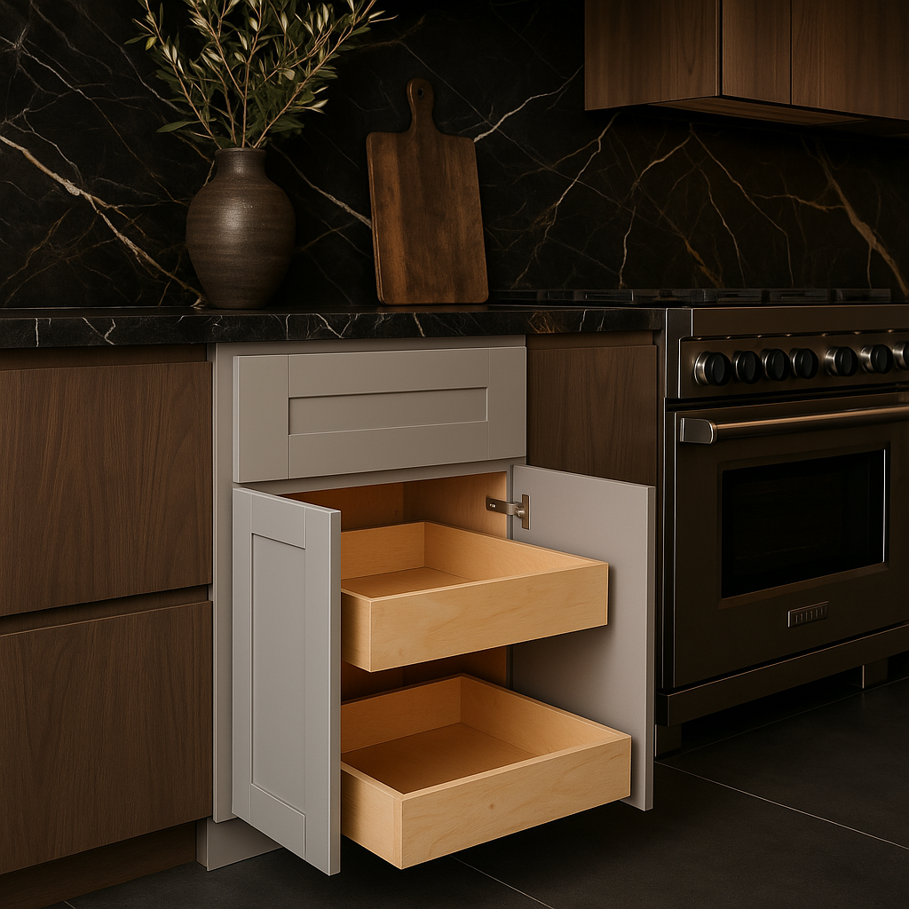 The Washington Veiled Gray Shaker Base Cabinet transforms your kitchen into a haven of sophistication and functionality. Its subtle gray finish complements a variety of decor styles, while the shaker design adds a touch of timeless elegance. Pair it with marble countertops and stainless steel appliances for a modern yet warm aesthetic. This cabinet is not just a storage solution but a statement piece that elevates your kitchen to luxurious living.