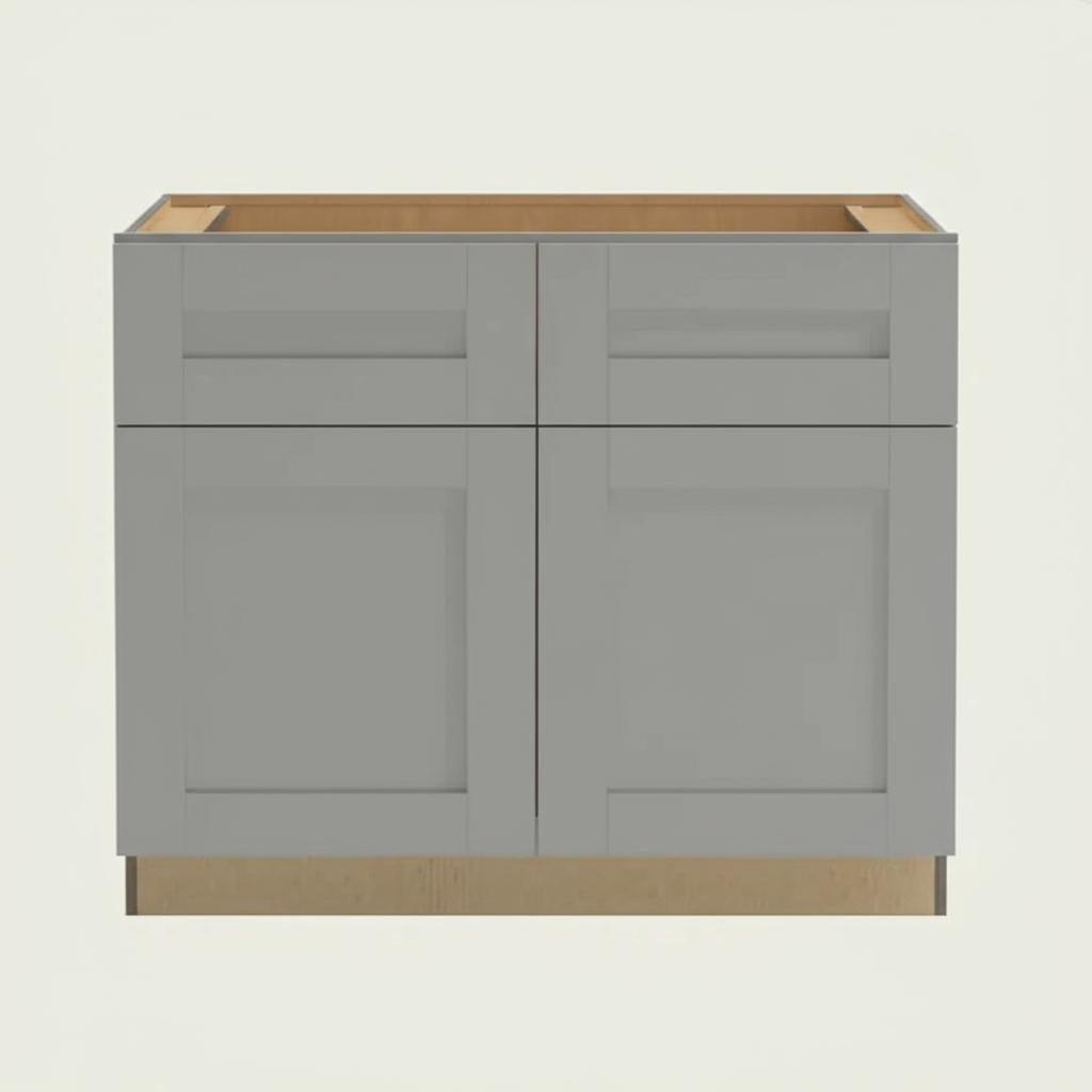 Upgrade your kitchen with the Veiled Gray Shaker Base Cabinet and experience the perfect blend of style and functionality.