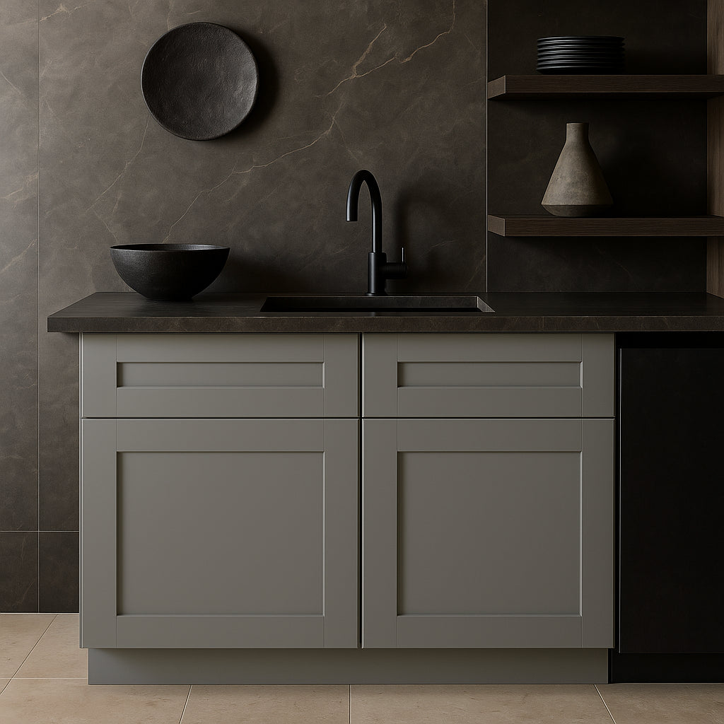 The Veiled Gray Shaker Base Cabinet combines durable plywood construction with elegant shaker-style doors and soft-close functionality, offering a sophisticated and practical solution for modern kitchens.