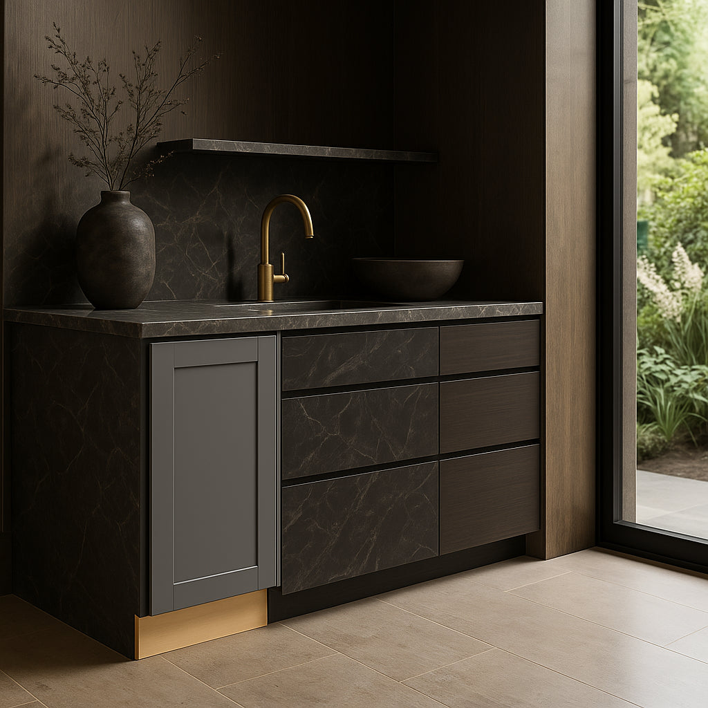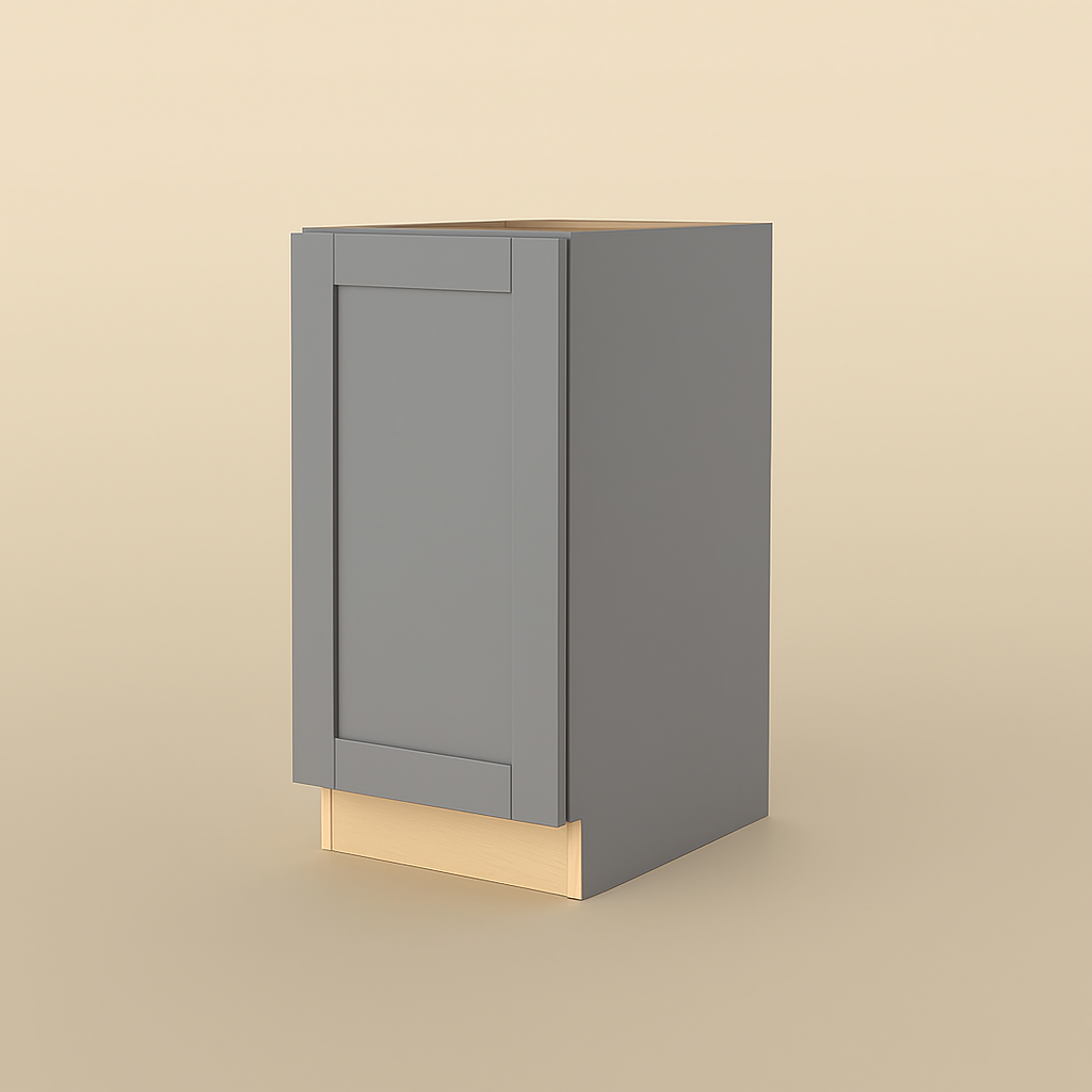 The Veiled Gray Shaker Base Cabinet combines modern aesthetics with durable construction. Featuring soft-close technology and adjustable shelves, it offers functionality and elegance for your kitchen.