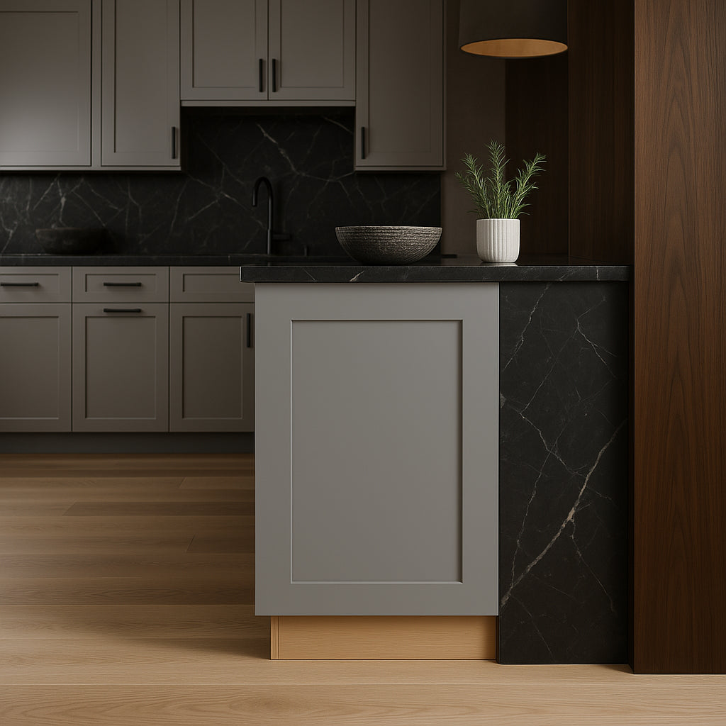 Elevate your kitchen's appeal with the durable and chic Veiled Gray Shaker Base Cabinet—order yours today!