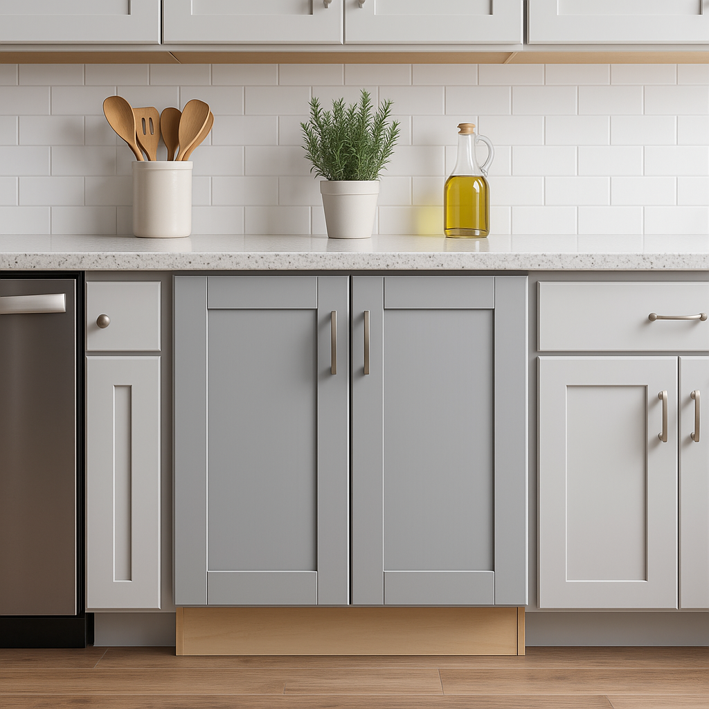 Upgrade your kitchen today with the Veiled Gray Shaker Base Cabinet for a blend of style and functionality.