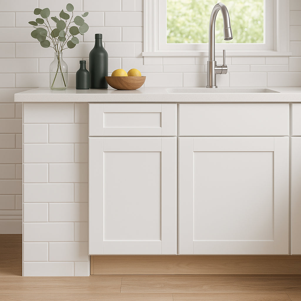 The Washington Vesper White Kitchen Base Cabinet combines modern shaker-style design with durable CARB II compliant plywood construction. Featuring soft-close technology and adjustable shelves, it offers both elegance and practicality for your kitchen.