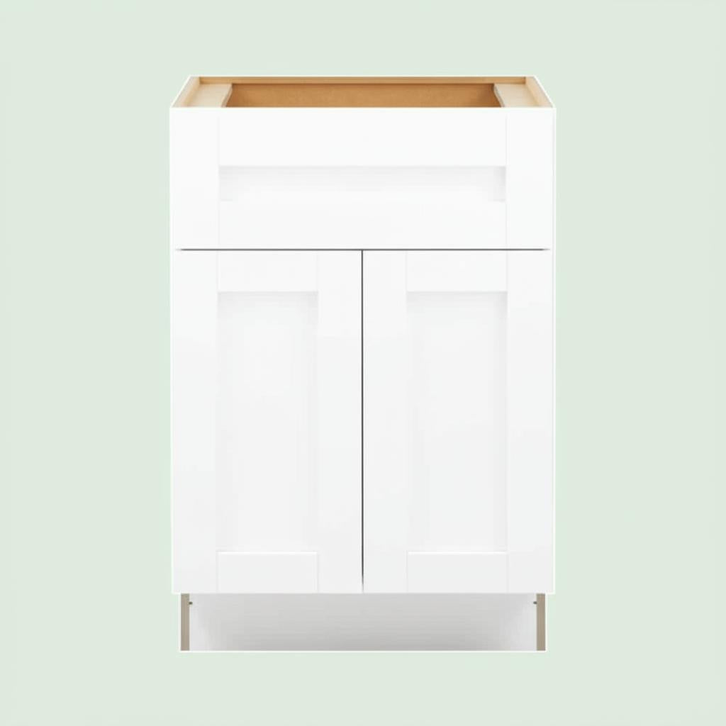 The Washington Vesper White Shaker Base Kitchen Cabinet combines modern aesthetics with practical functionality. Featuring soft-close technology, durable CARB II compliant plywood construction, and a vinyl-clad finish, this cabinet is perfect for enhancing any kitchen space.