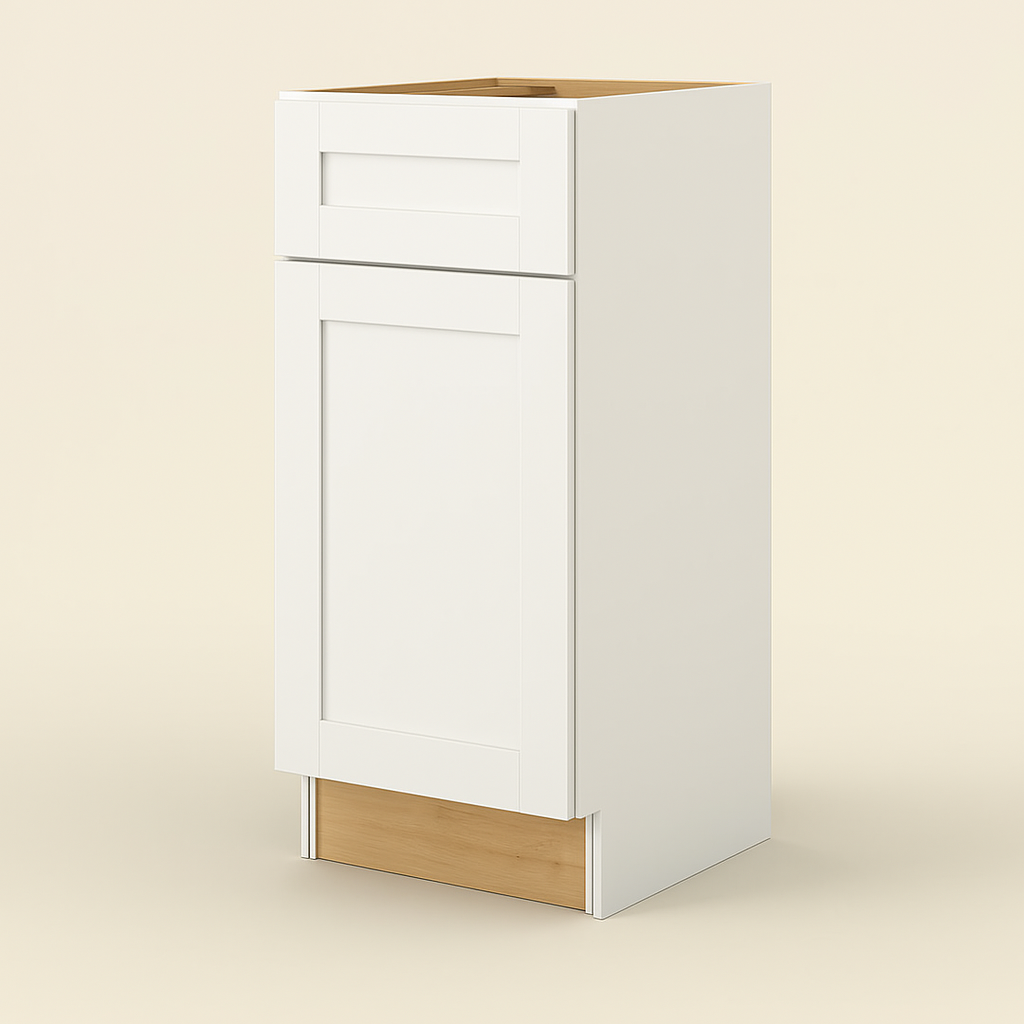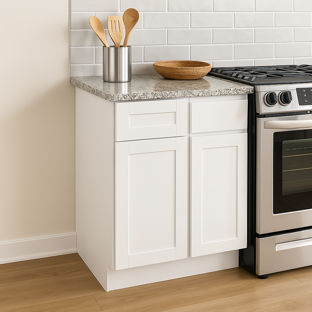 The Washington Vesper White Shaker Base Cabinet combines elegant design with practical features, including soft-close doors and durable CARB II plywood construction. Its thermofoil finish ensures easy maintenance and a pristine look, making it a perfect addition to any kitchen.