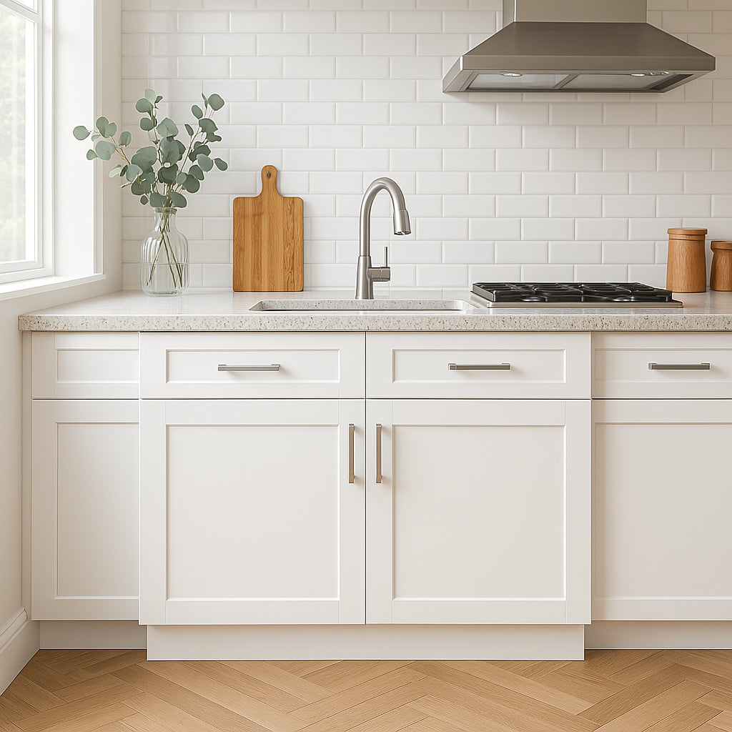 • Stylish Design: Shaker-style doors with wide frames and recessed panels for a classic appeal.