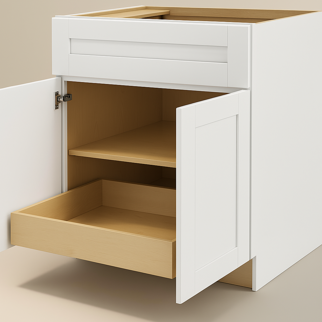 The Washington Vesper White Shaker Base Kitchen Cabinet combines sleek design with practicality, featuring durable CARB II compliant plywood construction and MDF shaker-style doors. Its soft-close functionality and adjustable shelves make it a versatile and elegant addition to any kitchen.