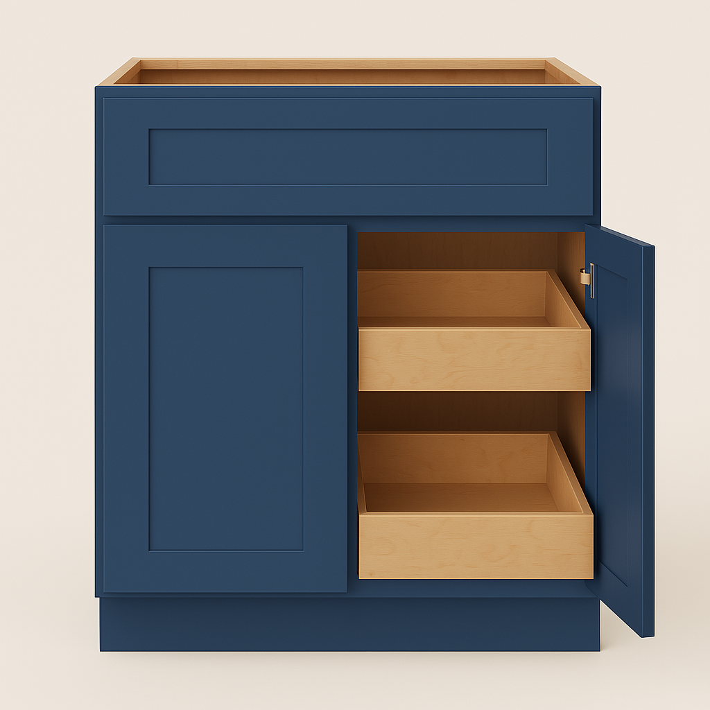 The Washington Vessel Blue Shaker Base Kitchen Cabinet combines modern elegance with practical functionality. Featuring a deep blue vinyl finish, soft-close doors, and durable plywood construction, this cabinet is perfect for stylish and efficient kitchen storage.