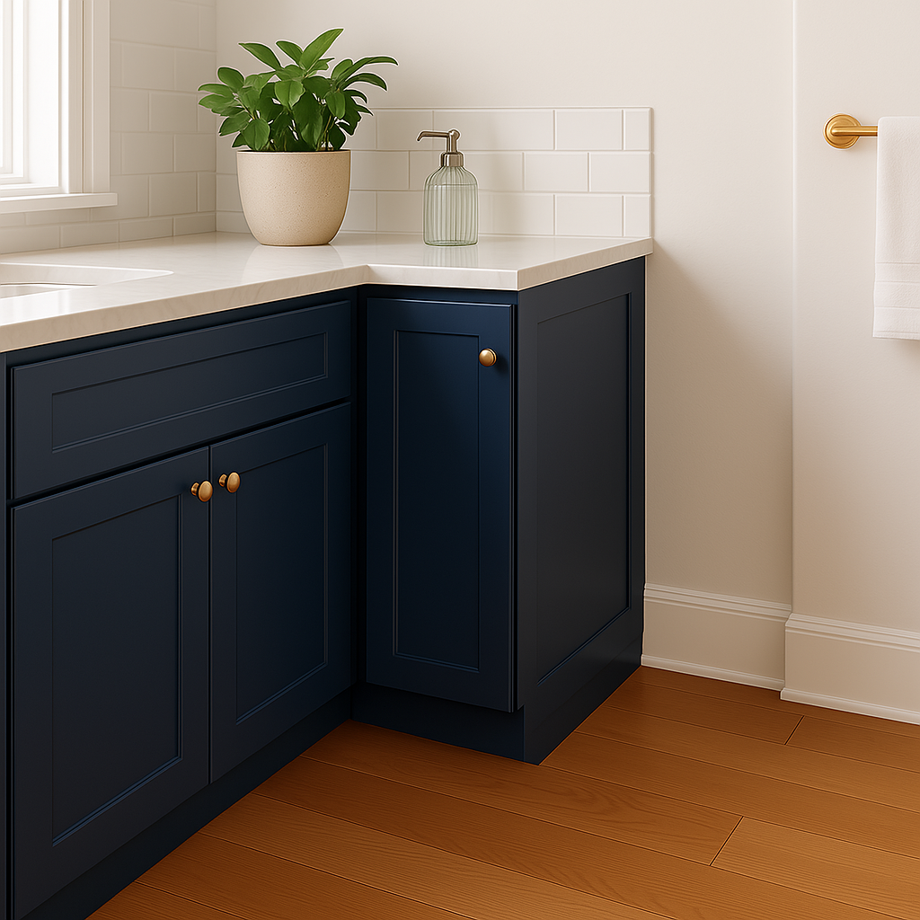 Transform your kitchen into a masterpiece of modern design with the Washington Vessel Blue Cabinet. Its deep blue finish exudes sophistication, while the contrasting white interior adds a touch of contemporary flair. The shaker-style doors and soft-close functionality ensure both style and practicality. Pair it with stainless steel appliances for a sleek look or natural wood accents for a warm, inviting atmosphere. This cabinet is the perfect blend of form and function, making it a must-have for any stylish kitchen.