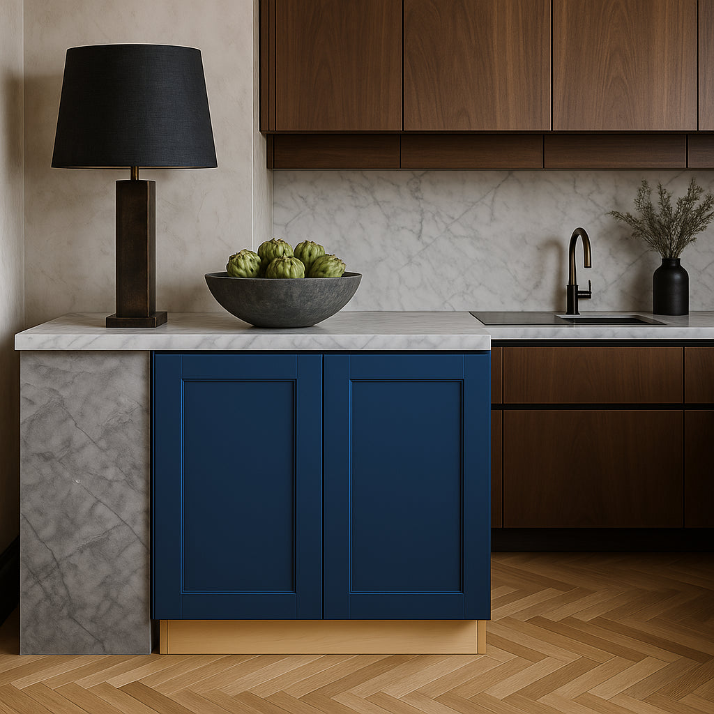 The Washington Vessel Blue Shaker Base Kitchen Cabinet combines modern aesthetics with durable construction. Featuring shaker-style doors, soft-close technology, and a moisture-resistant thermofoil finish, this cabinet is perfect for stylish and functional kitchen renovations.