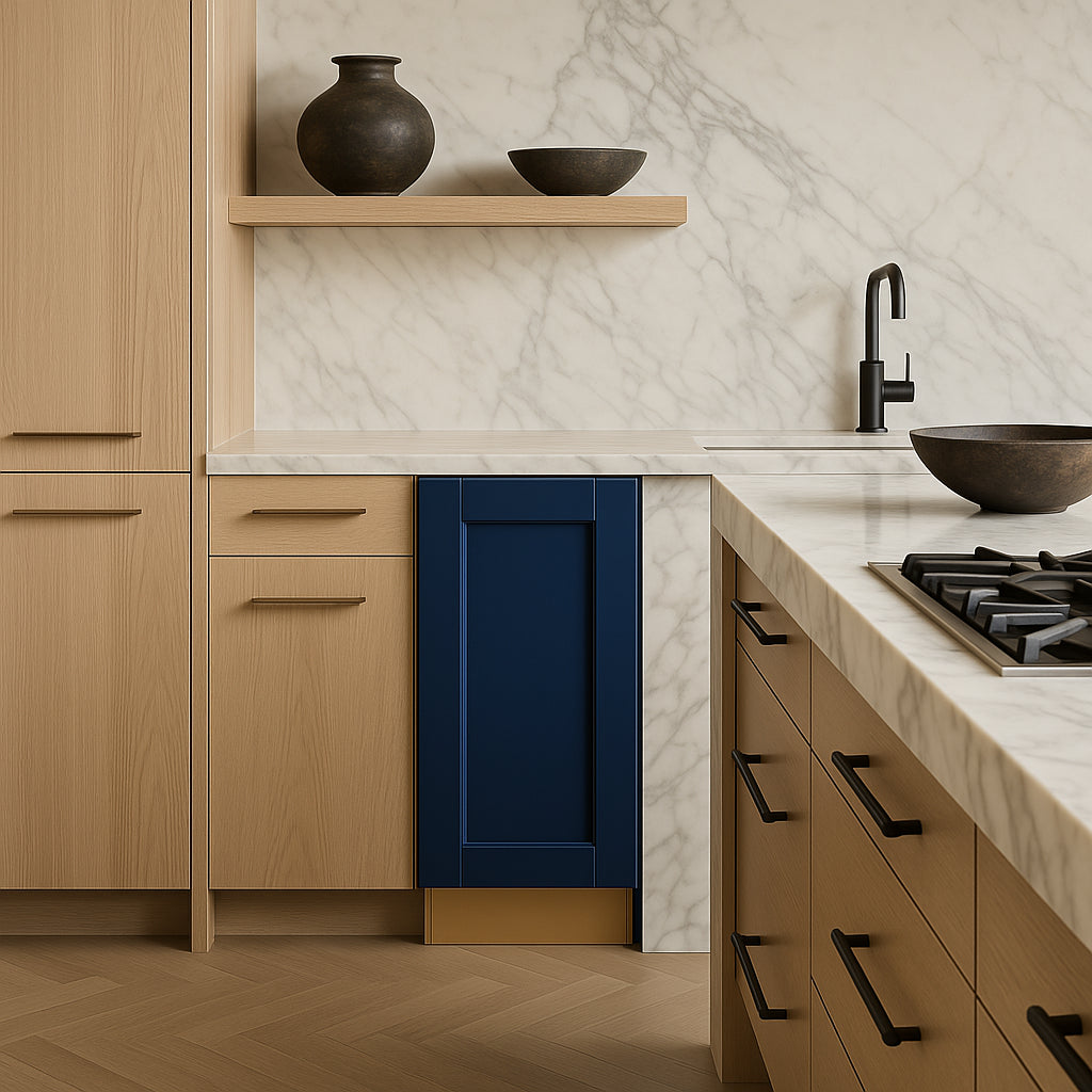 - Style & Function: Shaker-style MDF doors in a sleek Vessel Blue finish for a modern aesthetic.