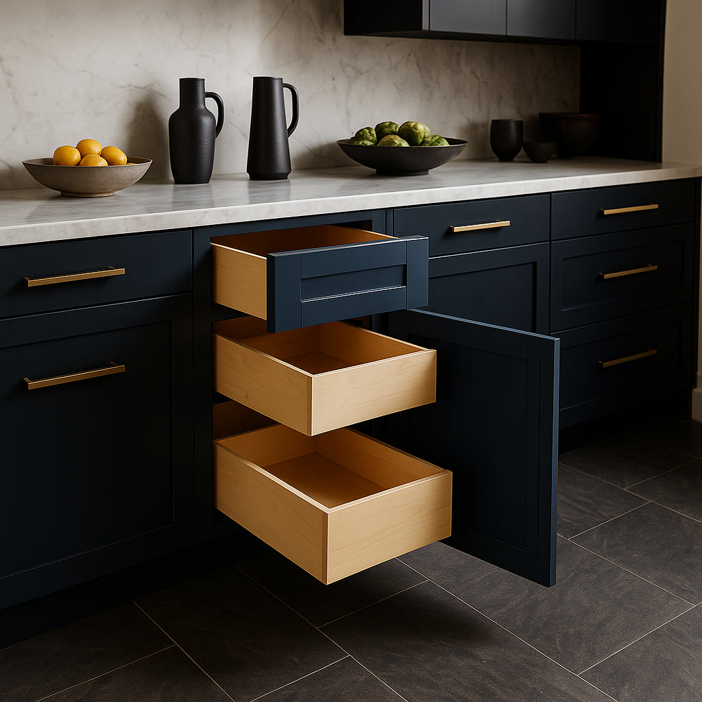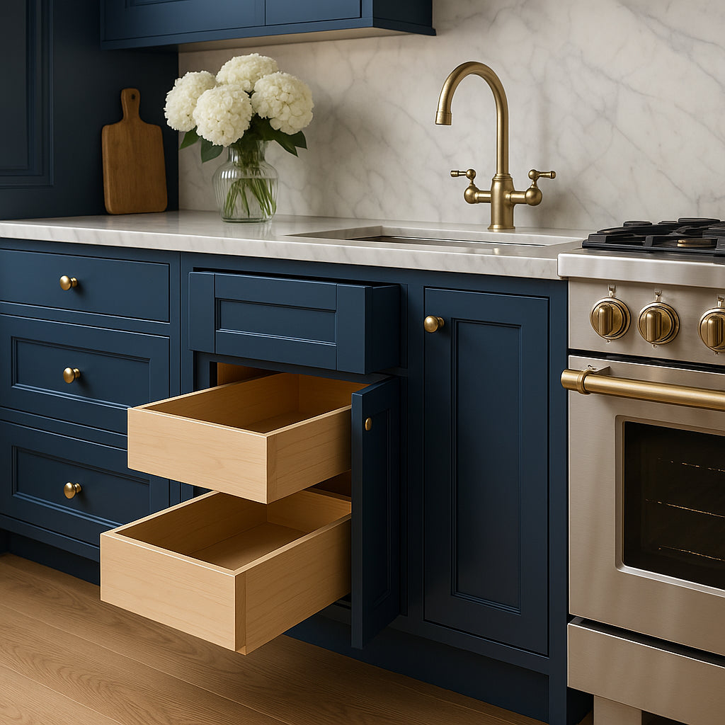 - Soft-Close Technology: Doors and drawers feature soft-close for a quieter, more elegant kitchen experience.