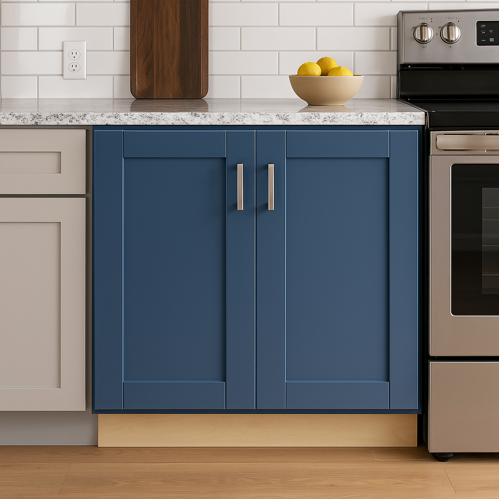Transform your kitchen with the Washington Vessel Blue Base Cabinet and experience the perfect blend of style and functionality.