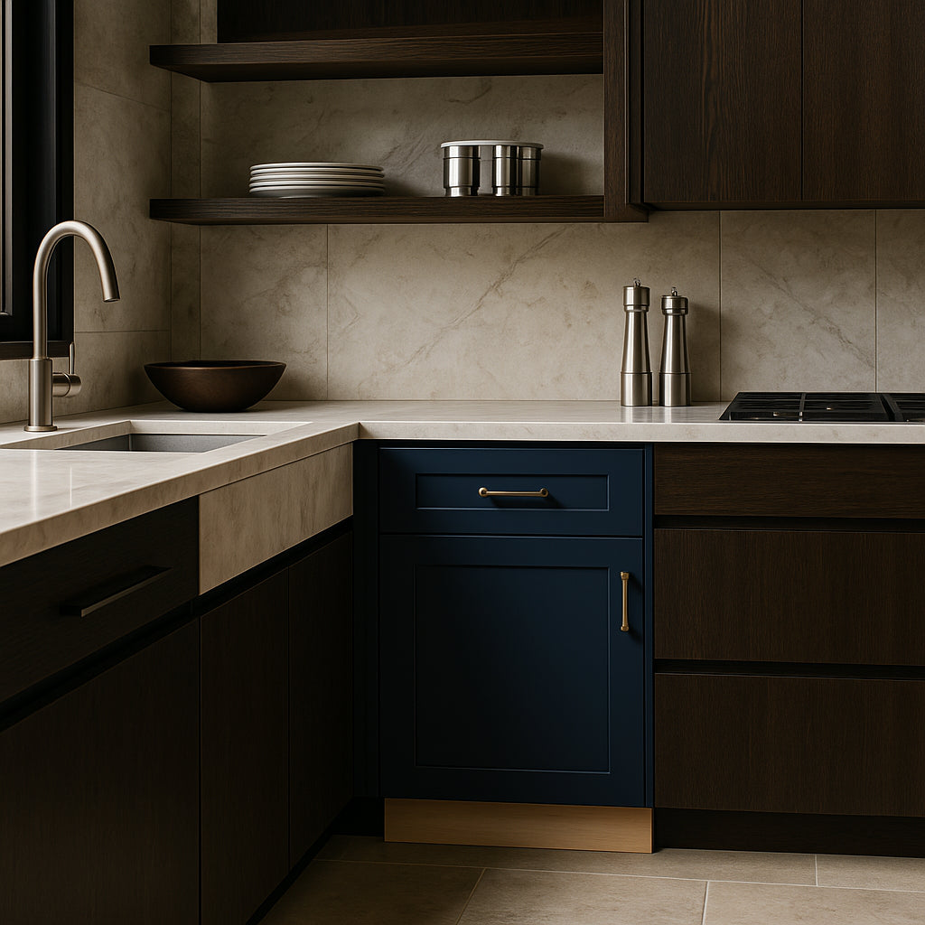 The Washington Vessel Blue Shaker Base Kitchen Cabinet combines bold design with practical functionality. Featuring a striking vessel blue finish and soft-close technology, this cabinet is crafted from durable CARB II compliant plywood and MDF, ensuring longevity and style.