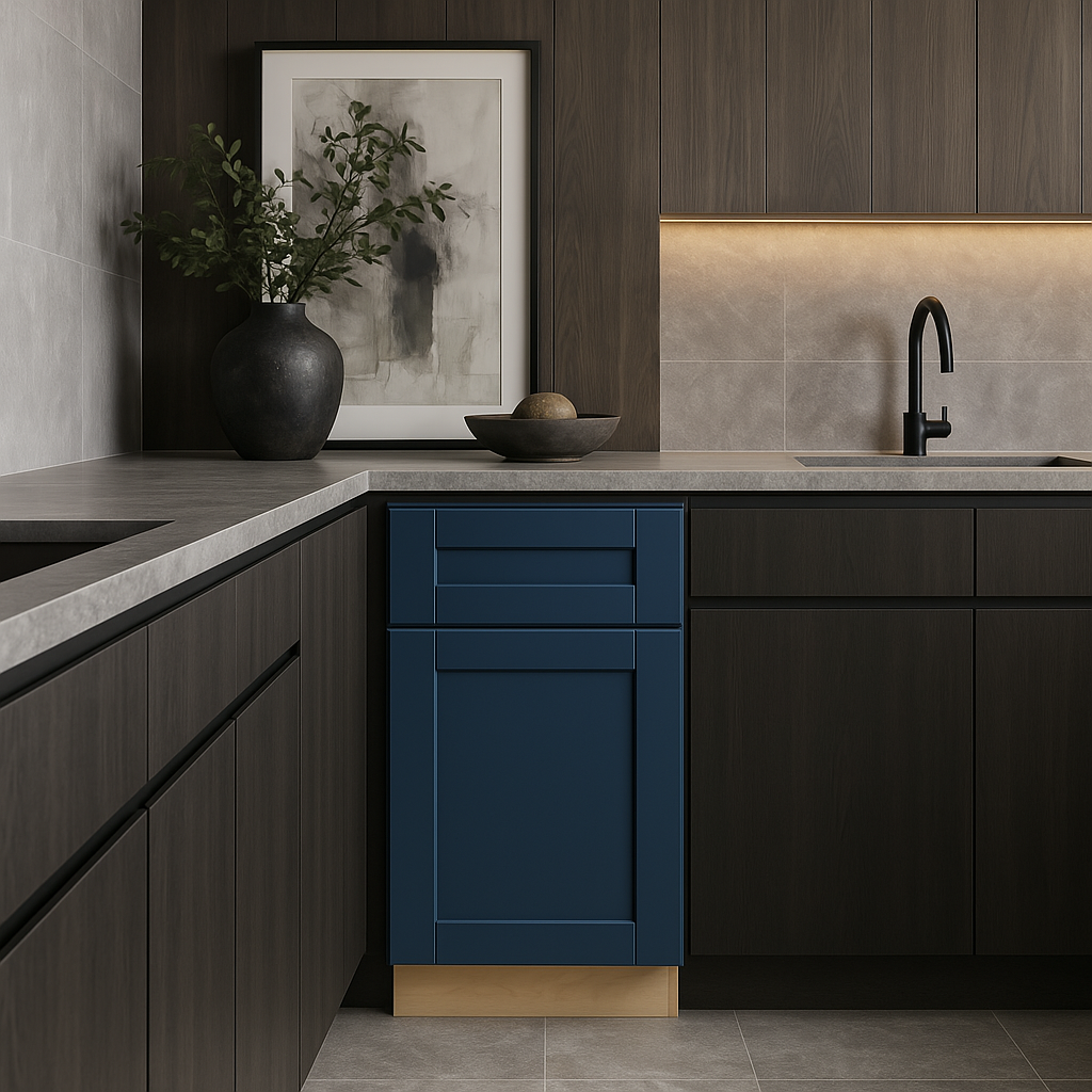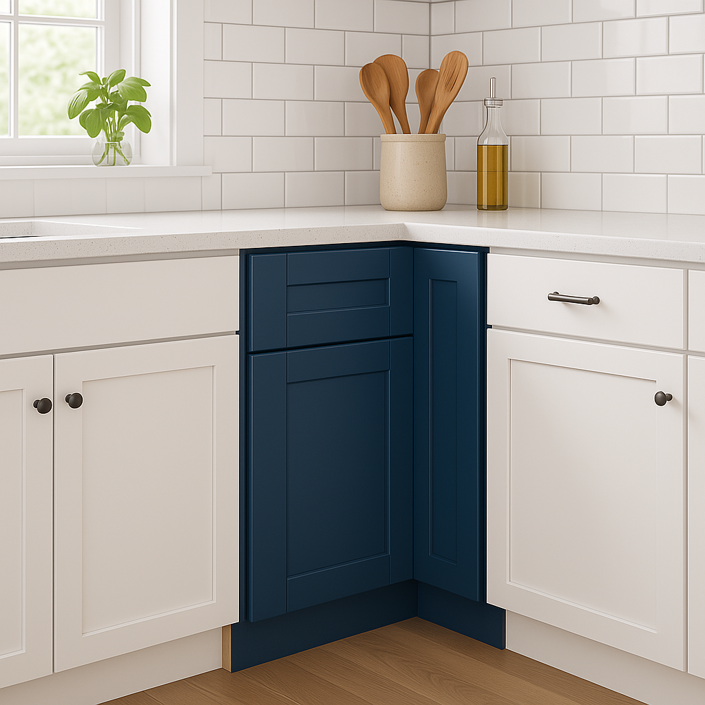 The Washington Vessel Blue Shaker Base Cabinet combines style and functionality with its deep blue finish, soft-close doors, and durable plywood construction. Perfect for modern kitchens seeking elegance and durability.
