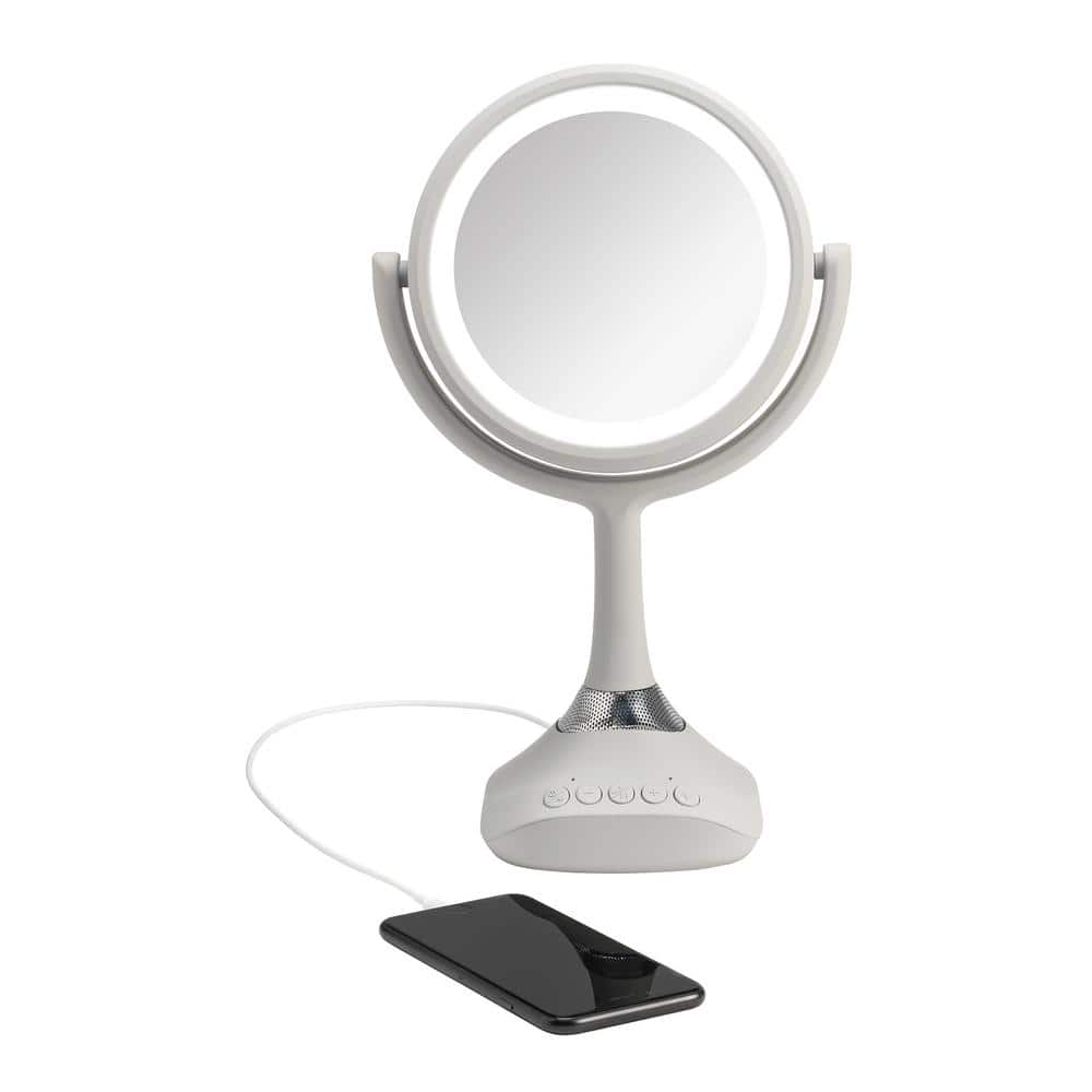 Home Netwerks 6.25 in. x 12.5 in. Bi-view Bluetooth LED Handheld Makeup Mirror in Gray