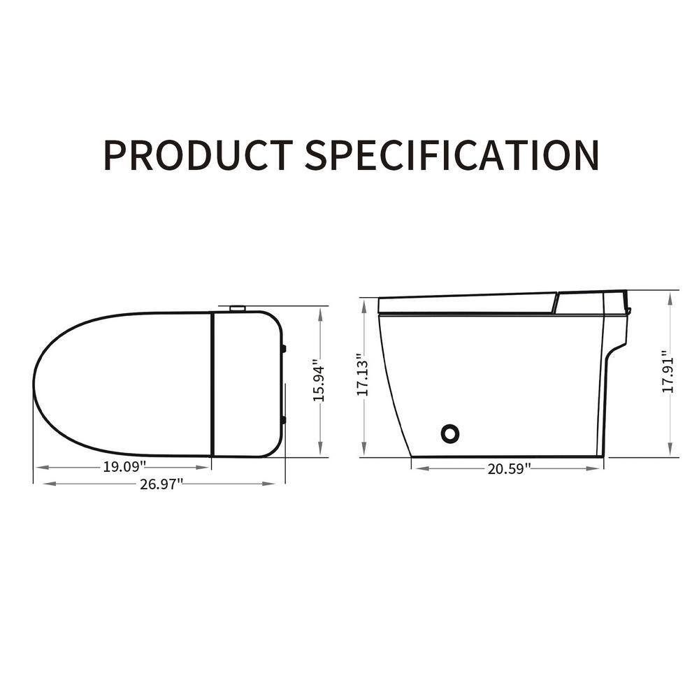 The HOMEMYSTIQUE Height Intelligent Toilet Bidet in White combines luxury and functionality with its tankless design and advanced features such as automatic open/close, flushing, and a heated seat. Ideal for cold seasons, it also comes with a remote for easy control, making bathroom visits a personalized and comfortable experience.