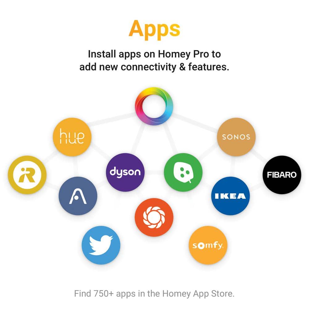 Comprehensive App Integration: Use Homey Flow to create unified device actions across your home for customized automation.