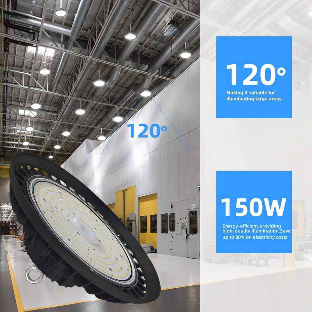 • Energy Efficiency: At 150W per unit, these lights are equivalent to 450W traditional lighting, saving significant energy.