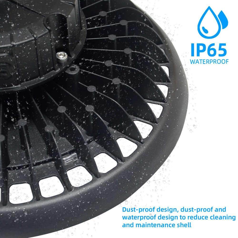 Honbei 11 in. 450-Watt Equivalent Integrated LED Dimmable Black High Bay Light 5000K UFO High Bay LED Light for Workshop 3-Pack