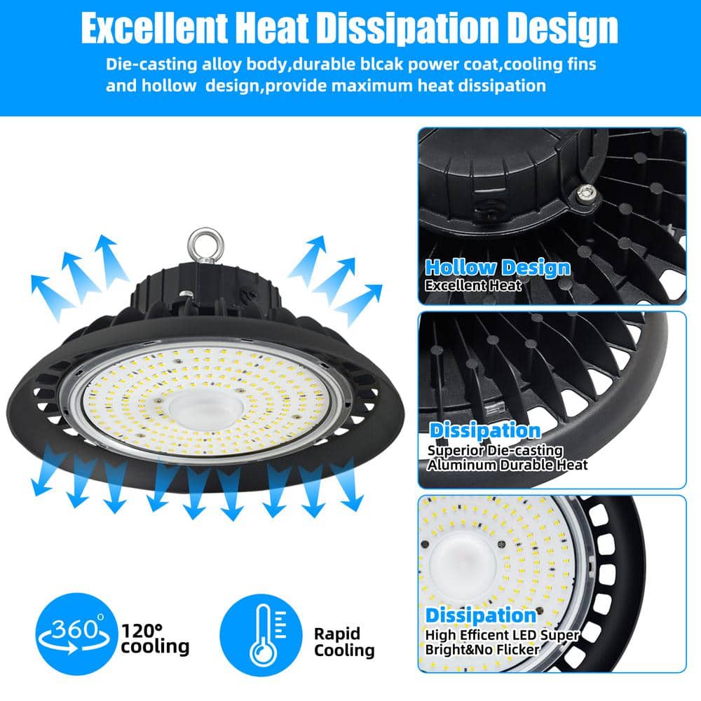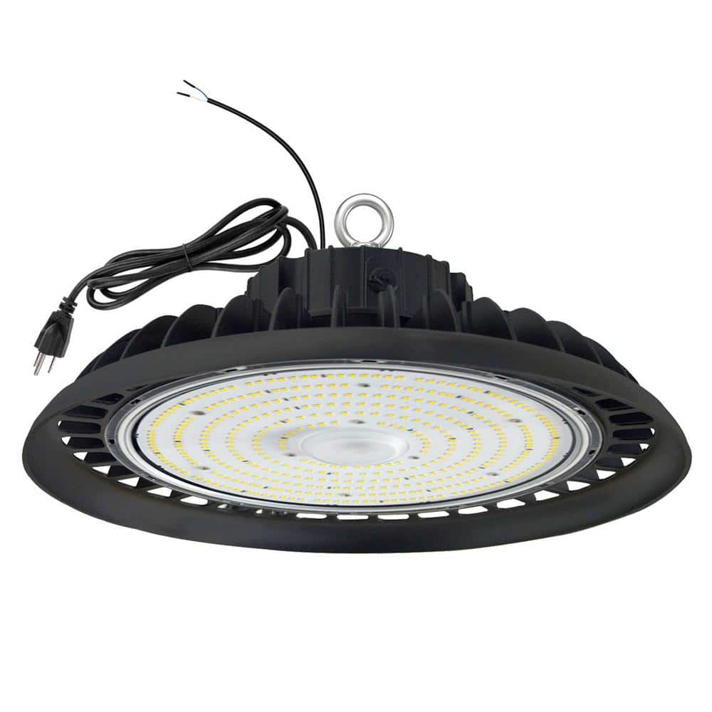 Honbei 11 in. 450-Watt Equivalent Integrated LED Dimmable Black High Bay Light, 5000K UFO High Bay LED Lights for Workshop