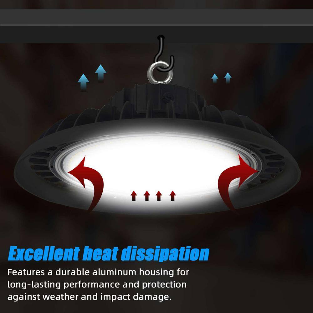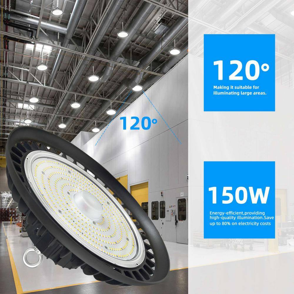 The Honbei UFO High Bay Light transforms vast industrial areas into well-lit, efficient spaces. With a sleek, modern UFO design, it seamlessly combines functionality and style. Imagine this striking fixture suspended in a minimalist warehouse or above high-ceilinged commercial spaces, its daylight color rendering every detail in crisp 5000K clarity. Ideal for creating an inviting yet industrial-chic ambiance, this light is essential for those who demand both performance and elegance.