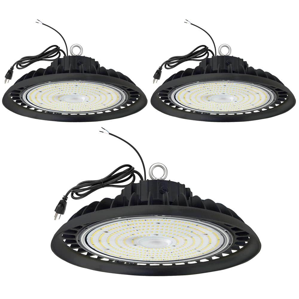 Illuminate large spaces with the Honbei 28000 Lumen UFO High Bay Light. Perfect for commercial settings like warehouses and gyms, this energy-efficient, 600-watt equivalent LED fixture provides 5000K daylight brightness. Featuring a durable, IP65 waterproof design, it's ideal for both indoor and outdoor use.