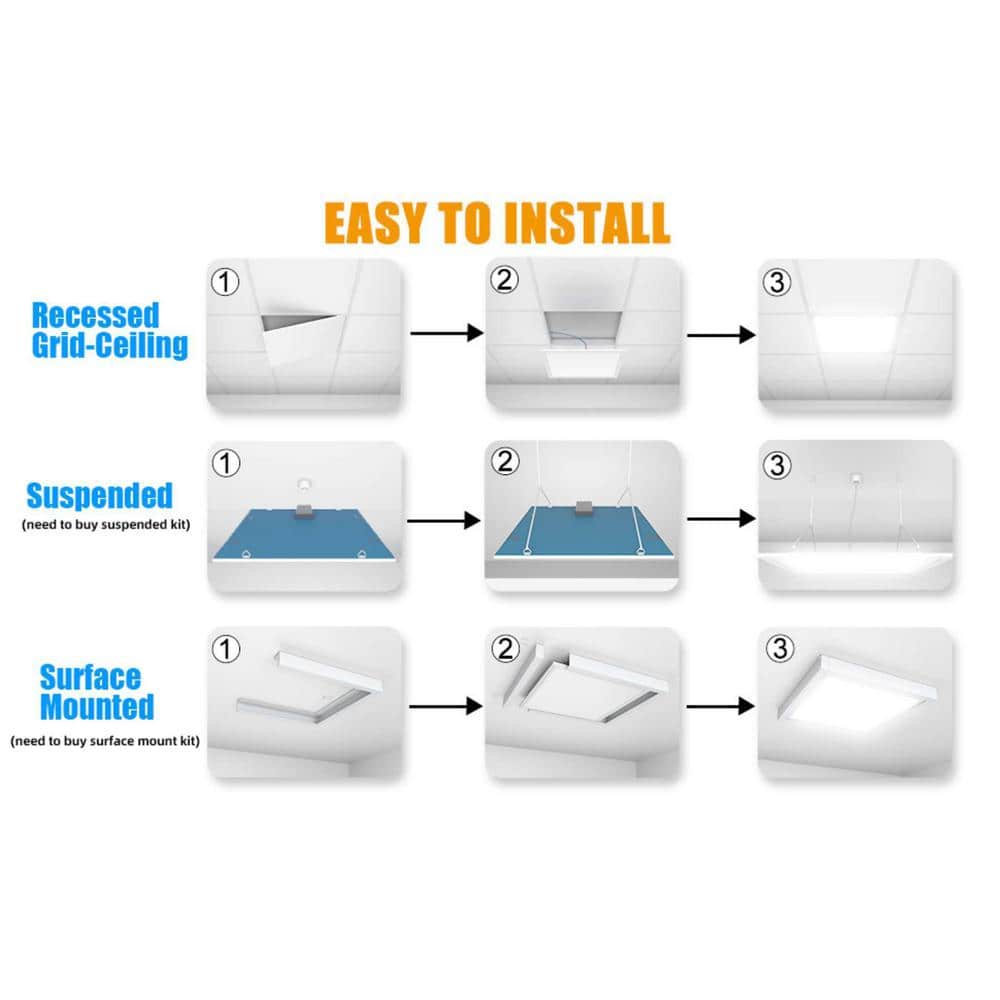 A: The LED panel light is designed for easy installation in standard drop ceilings and is hardwired for a seamless fit. Professional installation is recommended for optimal safety and performance.