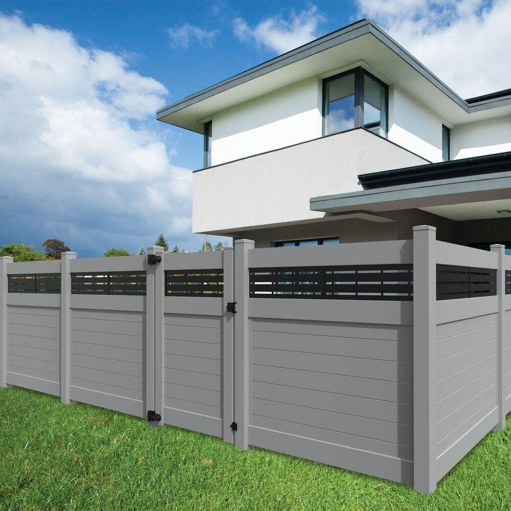Transform your outdoor space with the Gray Semi-Privacy Vinyl Fence Panel by Barrette Outdoor Living. Its modern horizontal board design and sleek gray finish offer a contemporary solution to privacy needs while maintaining airflow and light. Durable vinyl construction withstands the elements, making it a low-maintenance choice for both professionals and DIYers.