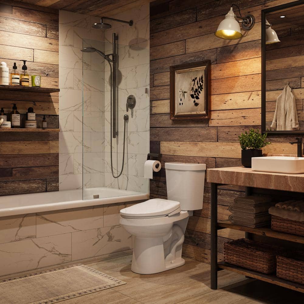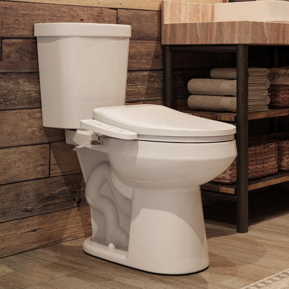 Smart Bidet Features: Includes adjustable nozzle for front and rear wash, heated seat, and warm air dryer.