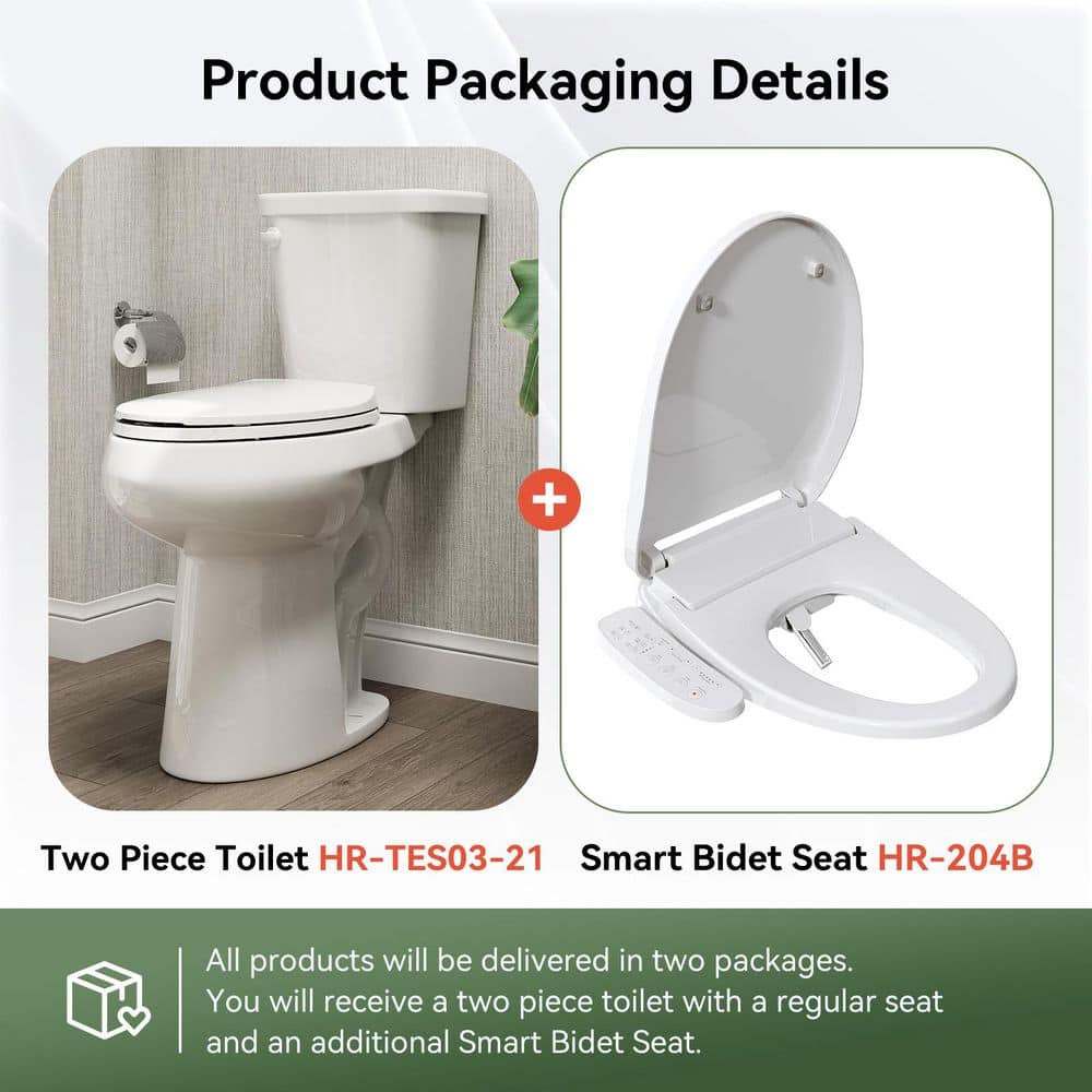 Experience unparalleled comfort and style with the HOROW Extra Tall 21 in. Smart Bidet Toilet. This innovative 2-piece toilet combines ergonomic design with luxurious smart features like seat heating and adjustable bidet functions for a modern bathroom solution. Its efficient 1.28 GPF flushing system ensures eco-friendly performance without compromising on cleanliness.