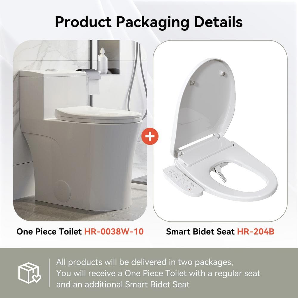 The HOROW Dual Flush Elongated Smart Bidet Toilet combines contemporary design with cutting-edge technology for unparalleled convenience and efficiency. Featuring a compact 1-piece design with a sleek, full-skirted profile, this ADA-compliant toilet boasts a dual flush system that saves water while maintaining powerful performance. With an integrated smart bidet seat, complete with a heated seat, night light, and warm air dryer, this toilet offers a luxurious and comfortable experience.