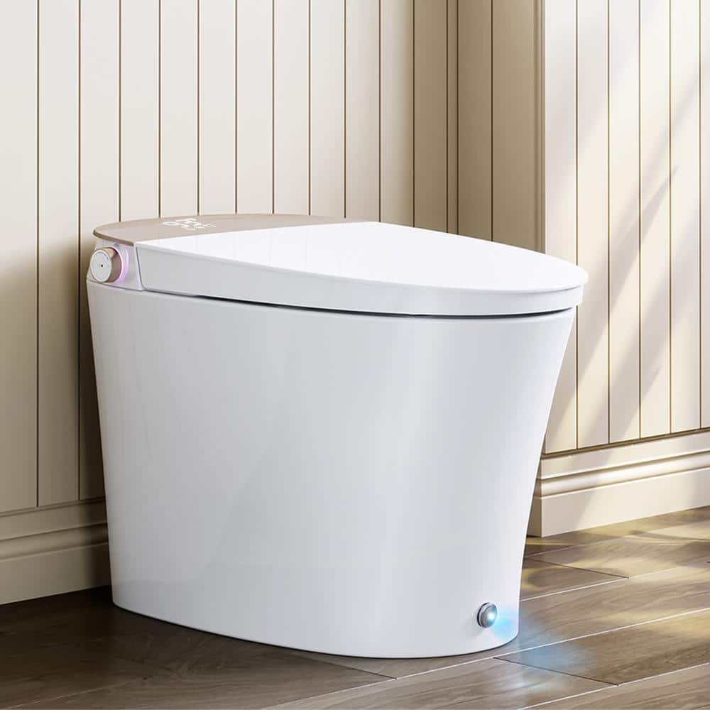 Transform your bathroom into a realm of opulence with this exquisite smart toilet from HOROW. The alluring rose gold backlid acts as a statement piece, seamlessly integrating tech-savvy features with timeless elegance. Imagine pairing it with sleek, muted marble floors to create a sanctuary of luxury and comfort. This smart bidet toilet isn't just a fixture; it's a gateway to a richly indulgent lifestyle, making everyday routines anything but ordinary.