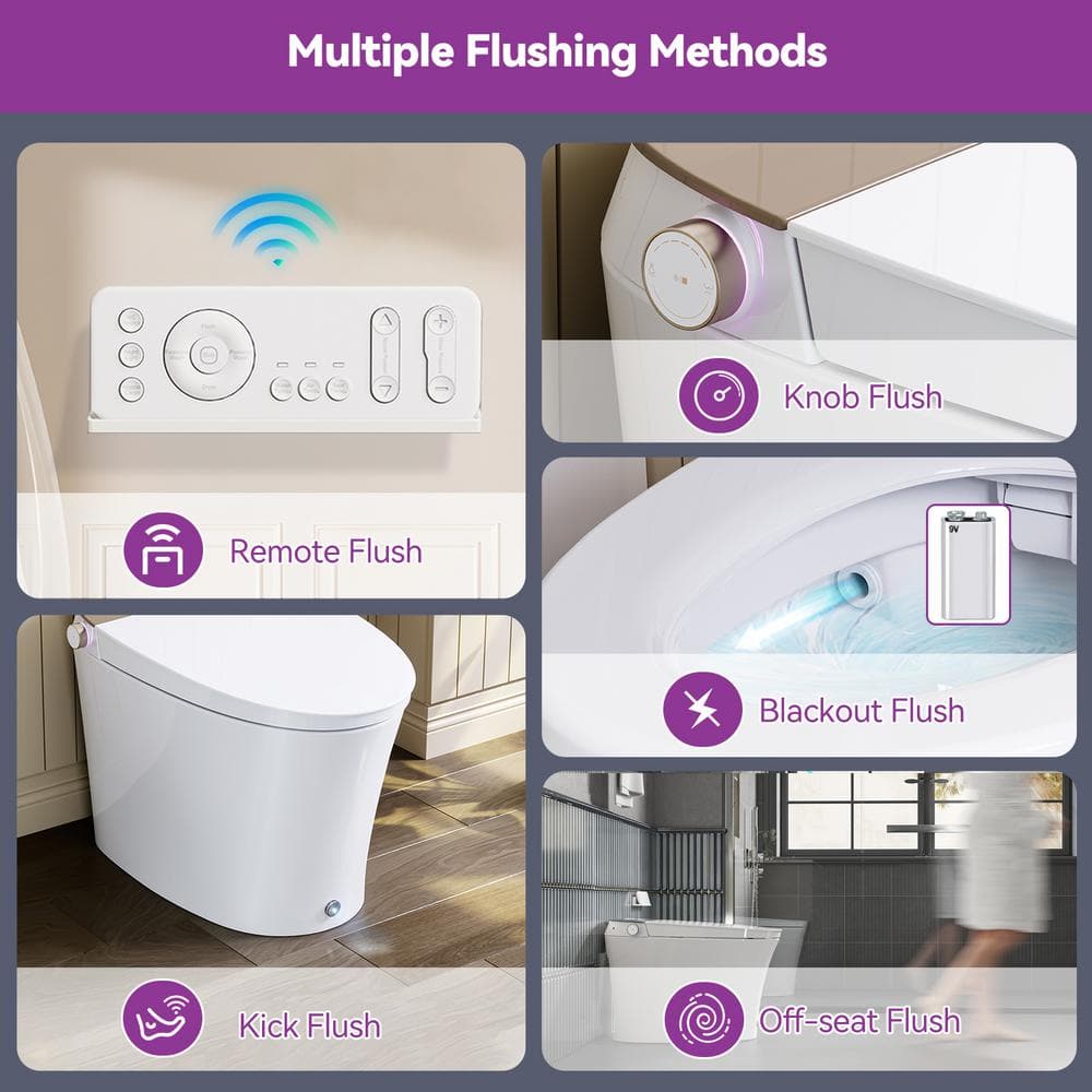 Convenient Operation: Includes remote control and foot-kick flush for hands-free use.