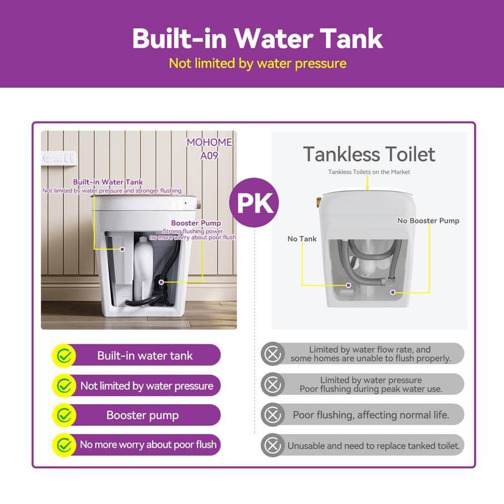 Powerful Flushing: Built-in tank with booster pump for consistent, powerful flushing.