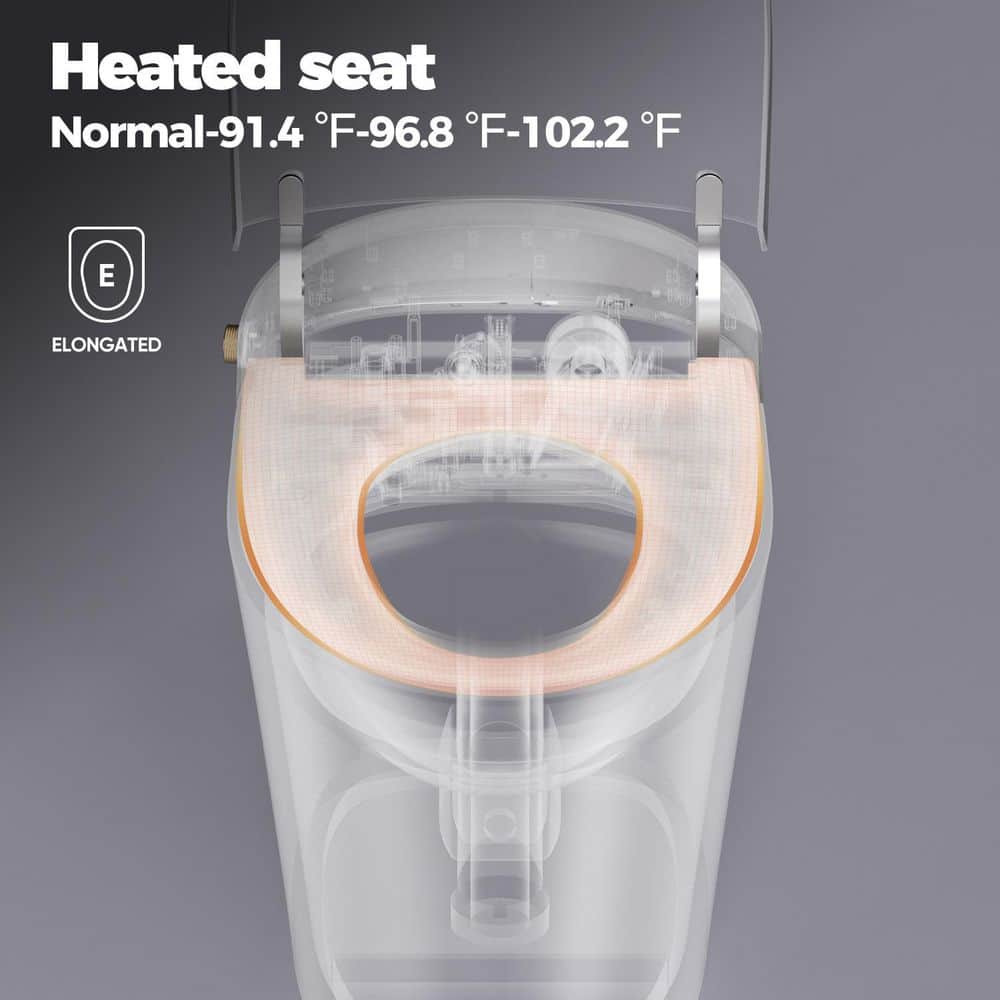 • Heated Comfort: Built-in warmer on the elongated seat ensures no more cold seat surprises.