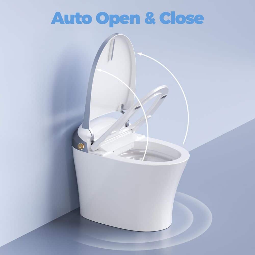 • Hands-Free Operation: Auto open, auto close, and auto flush with motion sensor, foot sensor, or remote.