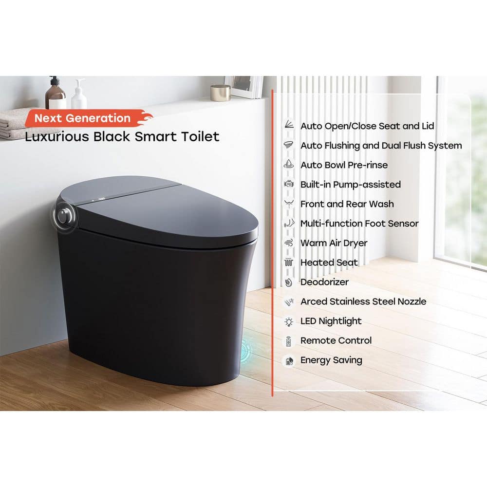 Automatic Features: Enjoy hands-free convenience with auto flush, lid open/close, and a foot sensor for seamless operation.