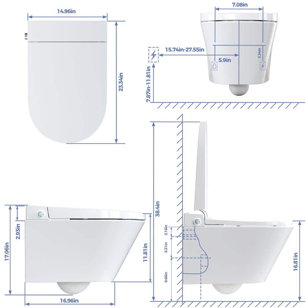 Elevate your bathroom with the HOROW Wall Hung Elongated Smart Toilet Bidet. This innovative fixture offers a stylish, minimalistic design with hands-free operation, heated seat, and integrated night light. Its concealed tank saves space while the eco-friendly flush system and bidet features promise a superior, sustainable bathroom experience.